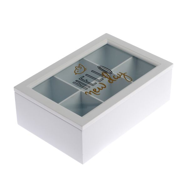 Dřevěná krabička na čaj se 6 přihrádkami, 6/24
