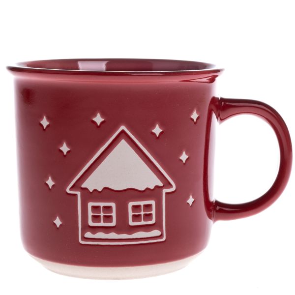 Keramický hrnek s domkem, červený, 450ml, 6/36