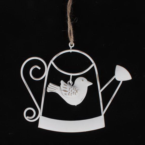 Kovová závěsná dekorace - konvička s ptáčkem, 12/144