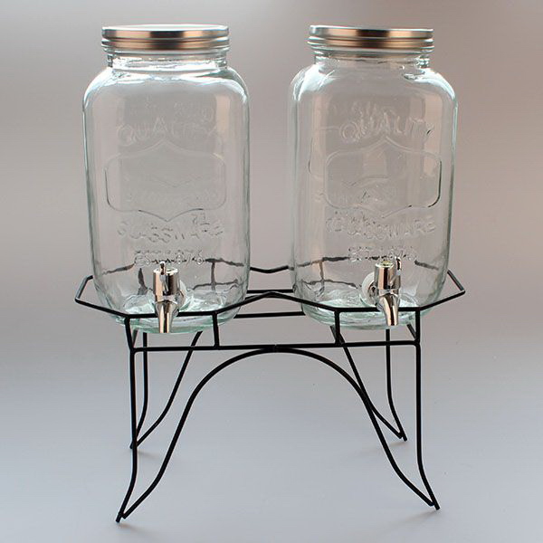 Skleněný nápojový barel se stojanem 2x3L, 1/2